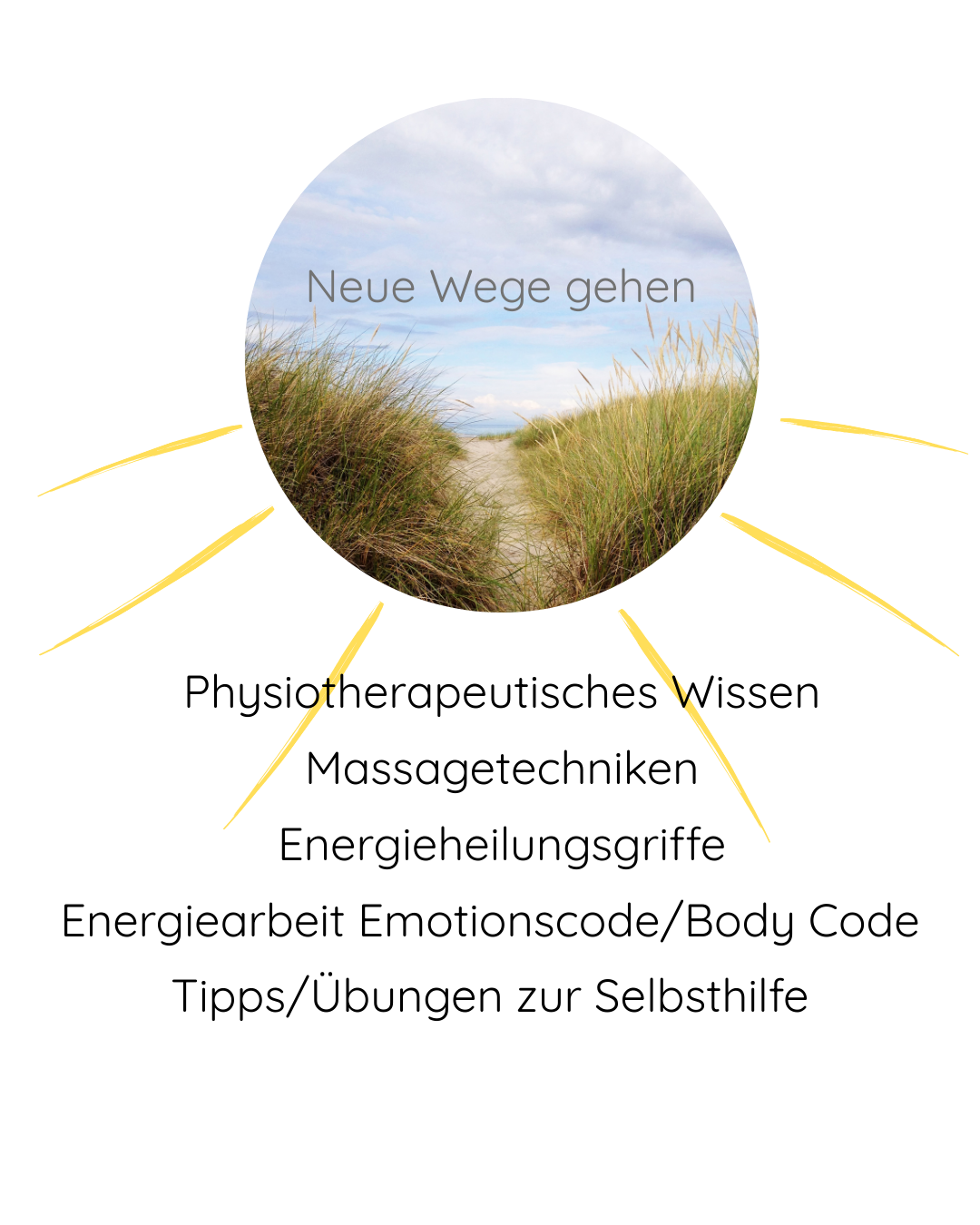 Mit meinem physiotherapeutischen Wissen und einer 30-minütigen Emotionscode-/Body-Code-Sitzung, kombiniert mit anschließenden sanften manuellen Techniken aus der Physio-, Massage-, Entspannungs- und Energiearbeit, aktiviere ich deine Selbstheilungskräfte. Stress und Anspannung aus einem belastenden Gelenk oder einem angespannten Körperteil können sich so lösen und Muskeldysbalancen sich regulieren. Ergänzend gebe ich dir in diesem Rahmen noch Anregungen zur Selbsthilfe mit an die Hand.